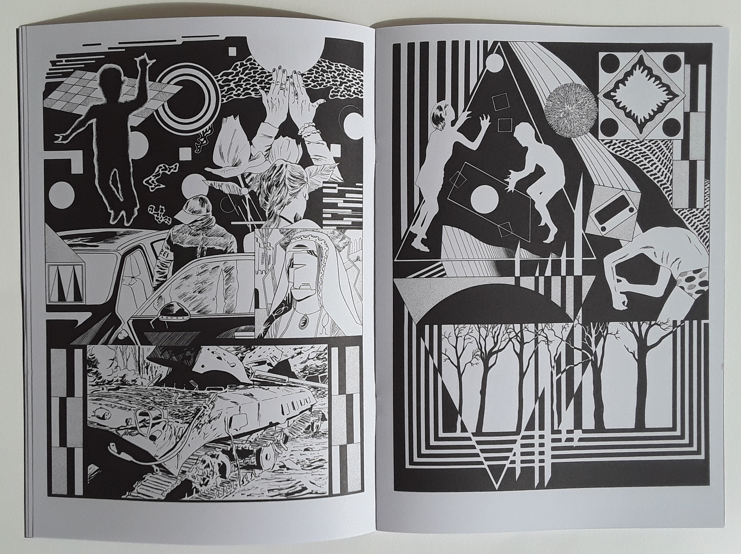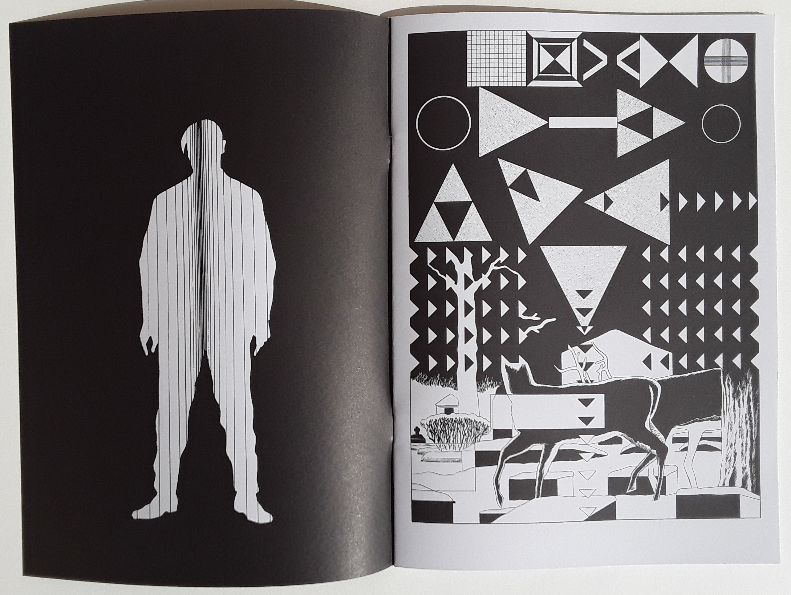36 pages, noir & blanc + holographic sticker, 21x29,7 cm (8,26x11,69 inch), 120 g
